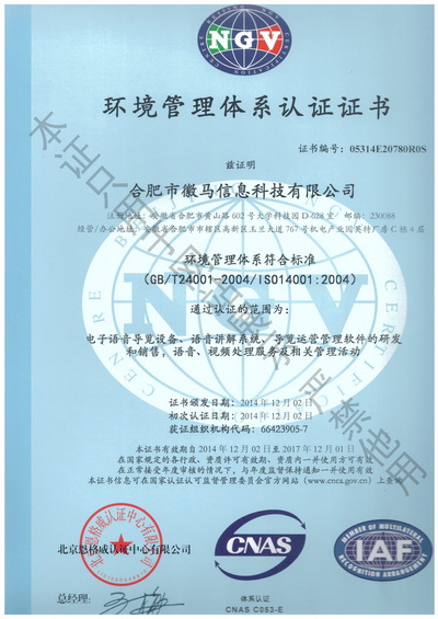 ISO14001证书